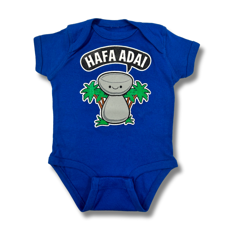 Our classic Hafa Adai Latte 100% Cotton Onesie with bottom snap closures. True to size.