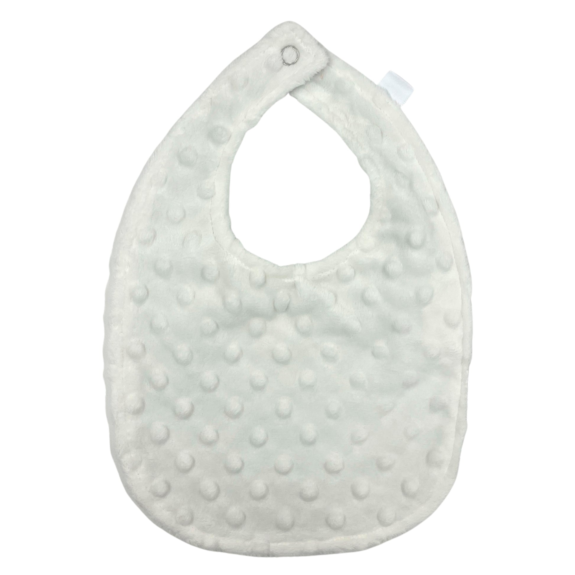 Our handmade bibs are made with the softest cotton and plush material with a snap closure. Neck size is approximately 10 inches to fit 3 month - 12 month old babies. *This item is handmade and may have imperfections.