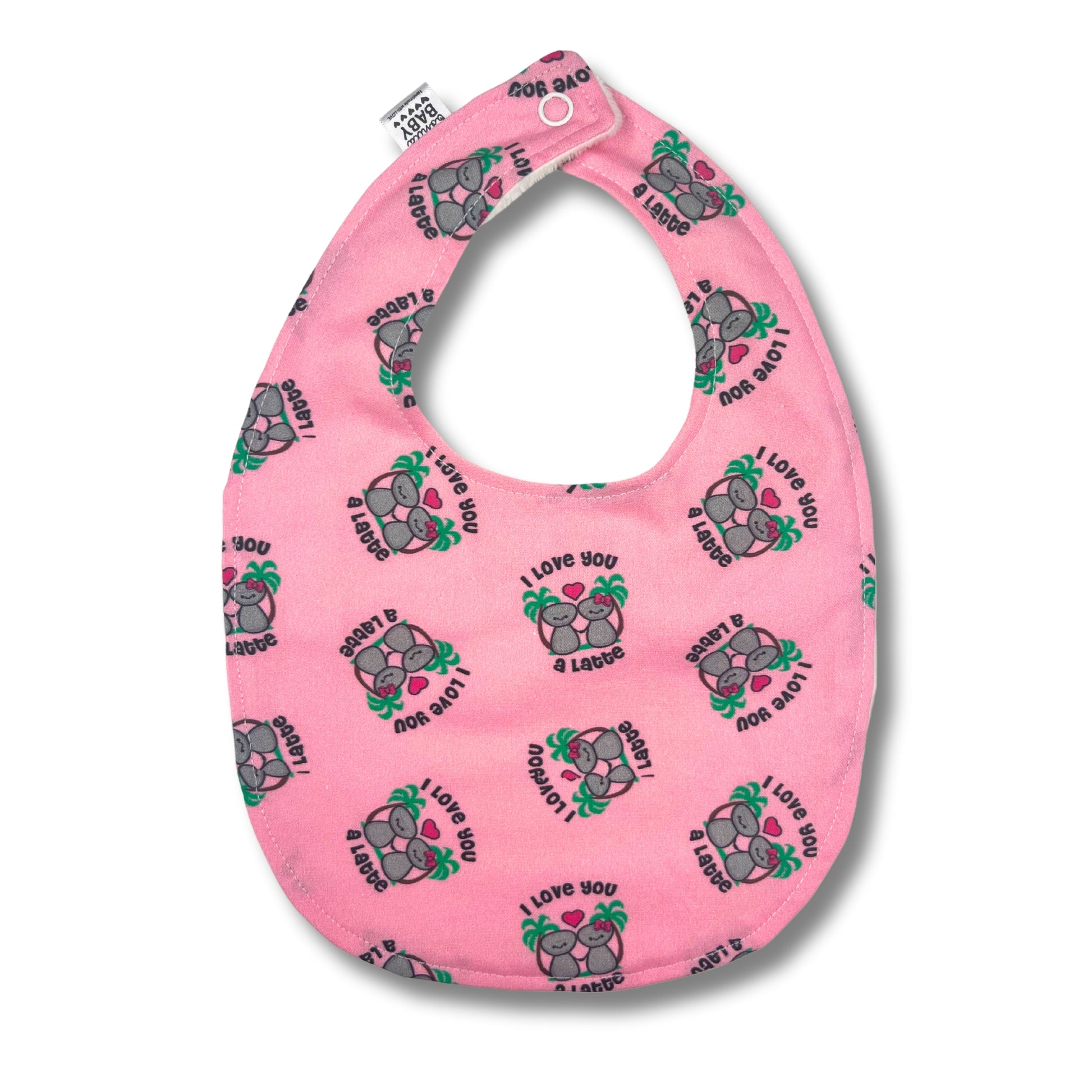 Our handmade bibs are made with the softest cotton and plush material with a snap closure. Neck size is approximately 10 inches to fit 3 month - 12 month old babies. *This item is handmade and may have imperfections.