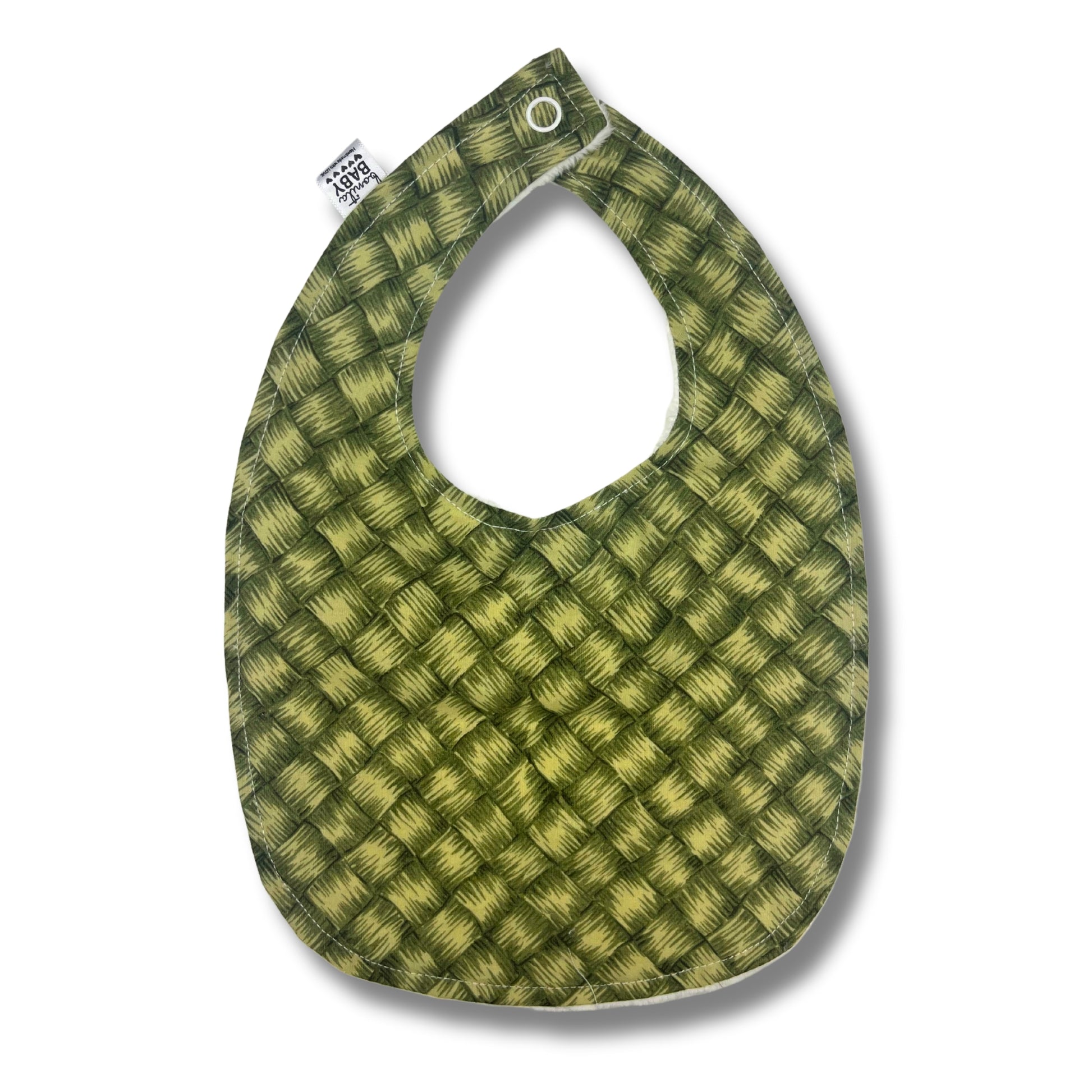 Our handmade bibs are made with the softest cotton and plush material with a snap closure. Neck size is approximately 10 inches to fit 3 month - 12 month old babies. *This item is handmade and may have imperfections.