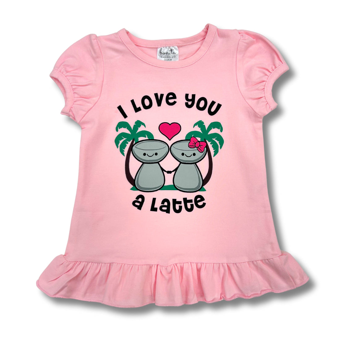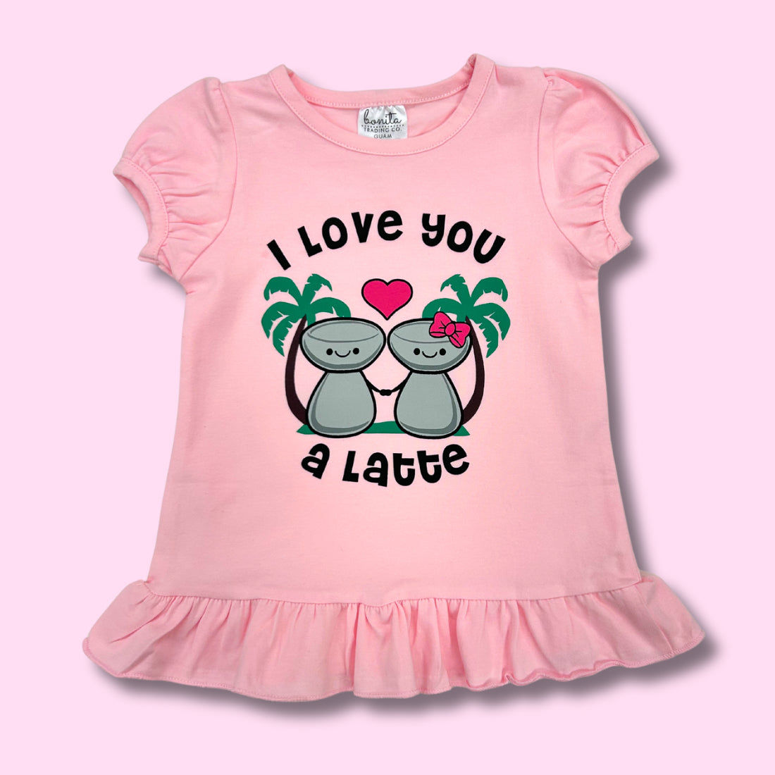 ILY a Latte! A lightweight, cotton dress with ruffle details.