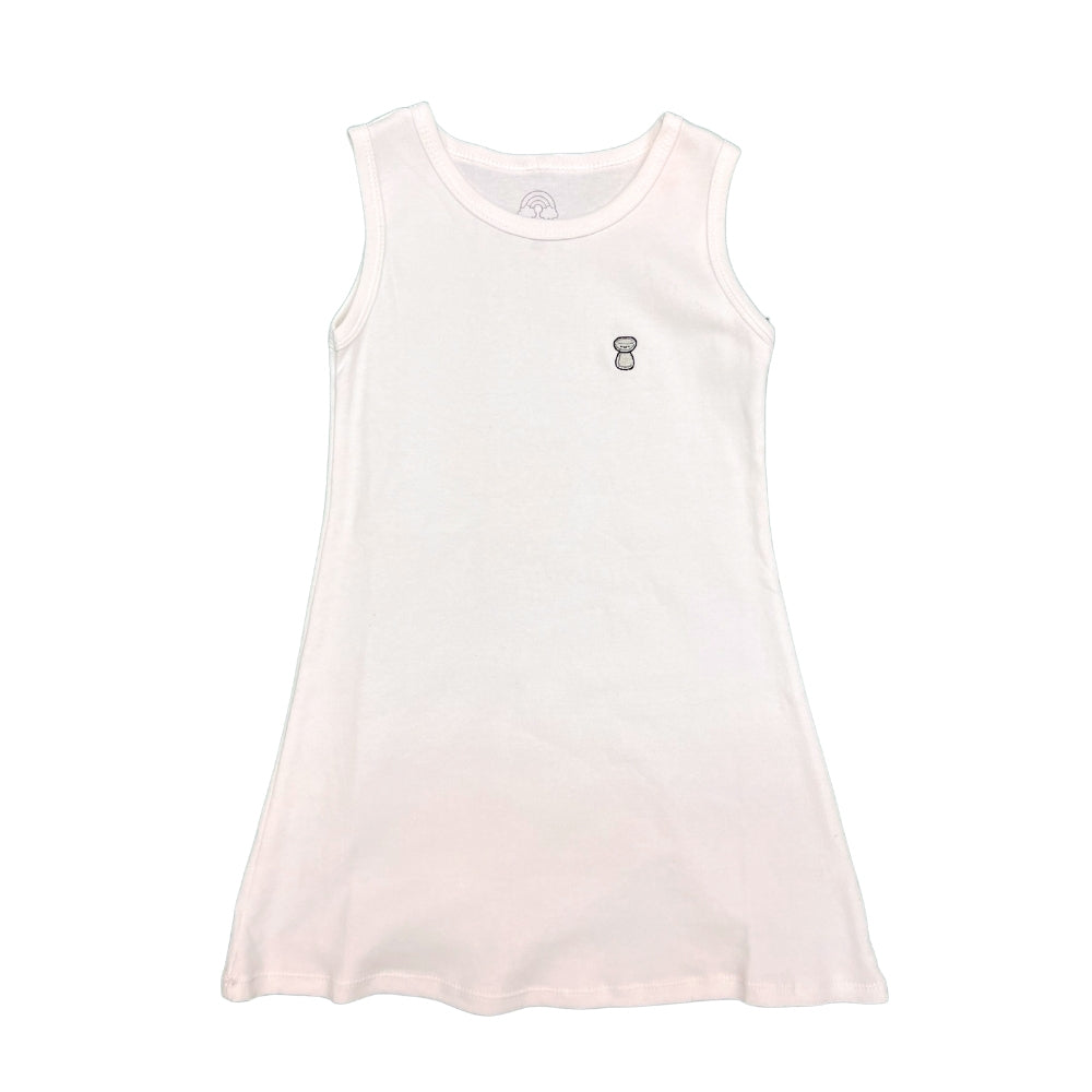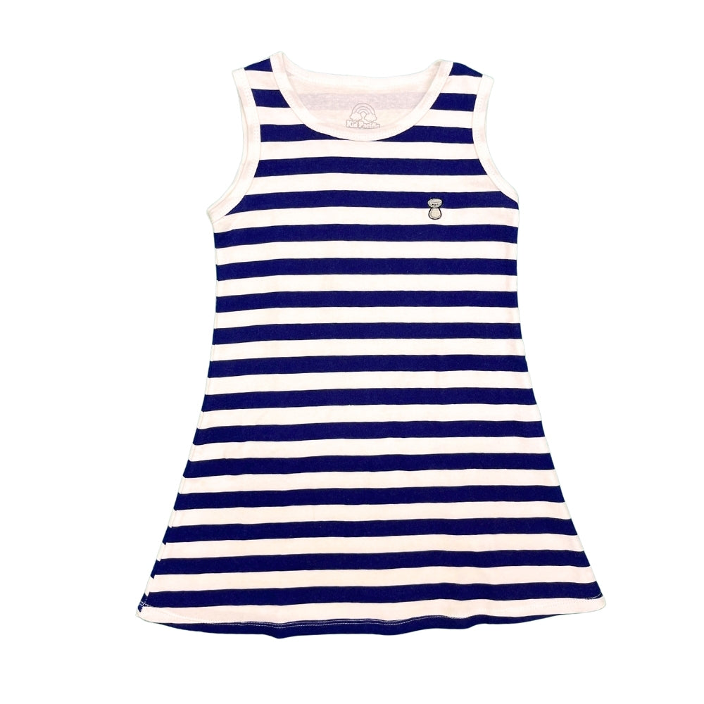 Adorable girl's dresses with latte stone embroidery in striped, hot pink, black, and white.
