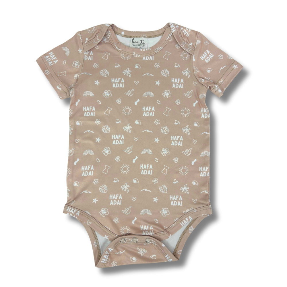 Islander pattern onesies made with lightweight, breathable, and soft bamboo cotton fabric for your baby. Runs big for with of room for growth.