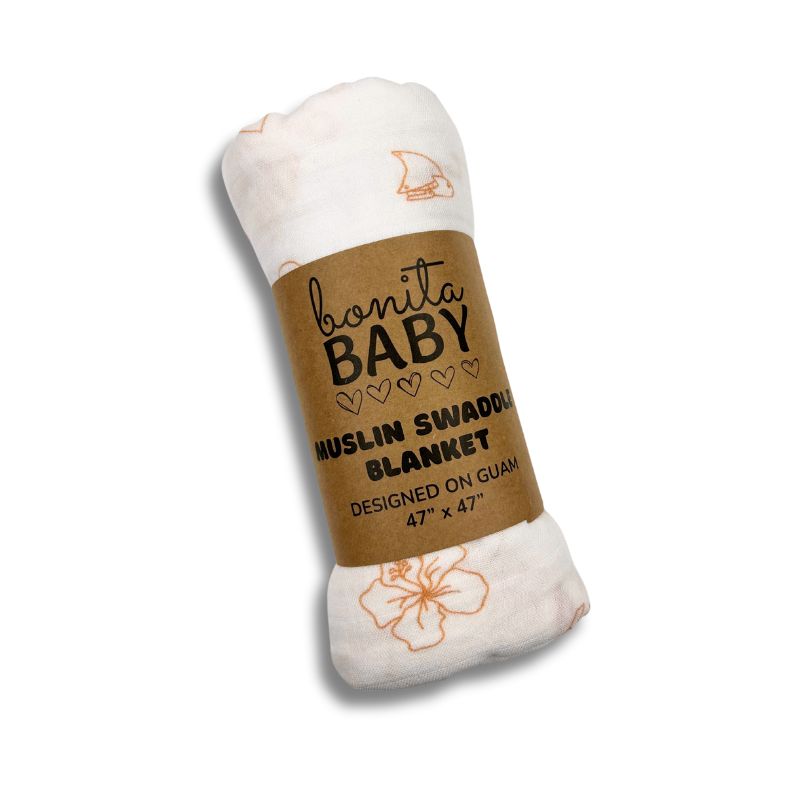 Bonita Baby Muslin Swaddles are made with breathable, soft bamboo fiber & organic cotton in your favorite local designs. Our Muslin Swaddles are versatile and can be used as a nursing cover, car seat cover, stroller blanket, beach blanket or swaddle blanket. Approx. 47"x47".