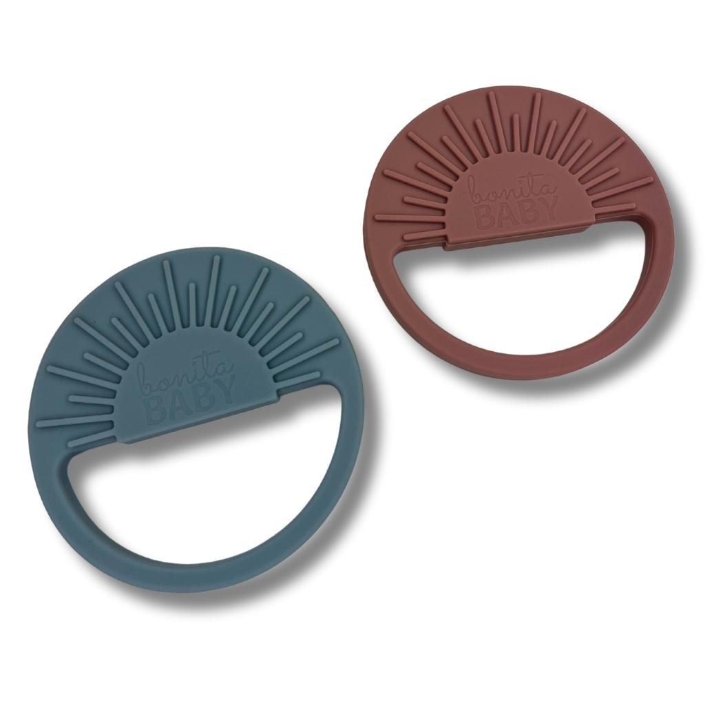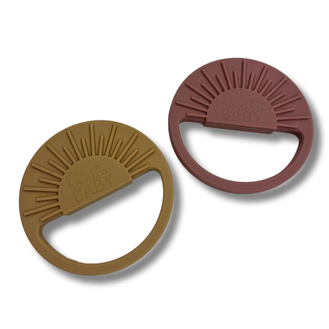 Teething isn't pretty, but our Sunshine Silicone Teethers are. Help soothe your baby's irritated gums with our silicone teethers. Recommended for ages 3 months +.