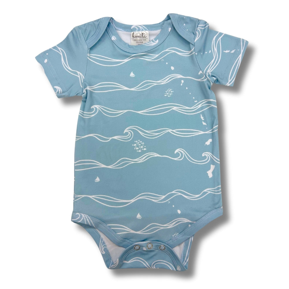 This onesie reflects the islands of the Marianas Archipelago made with lightweight, breathable, and soft bamboo cotton fabric. Runs big for with of room for growth.